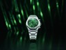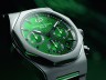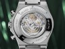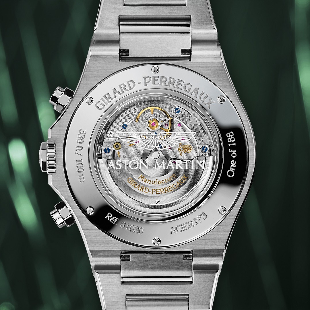 Na dan je prišla Astonova značilna dirkaška zelena, v katero mojstri niso odeli dirkalnika Formule 1, temveč številčnico elegantnega časomera, namenjenega osebam z okusom, ki cenijo luksuz in zmogljivost; torej lastnikom vozil z značko slovitih kril. Številčnico zaznamujejo še trije števci in aplikacija diamantnega vzorca, ki spominja na prešite usnjene sedeže športnikov AM. Zapestna kreacija z več komplikacijami se ponaša z osmerokotno luneto, ki predstavlja poklon uri Laureato iz leta 1975, in s transparentnim hrbtom, ki opazovalcu omogoča pogled na precizno avtomatsko gibanje.