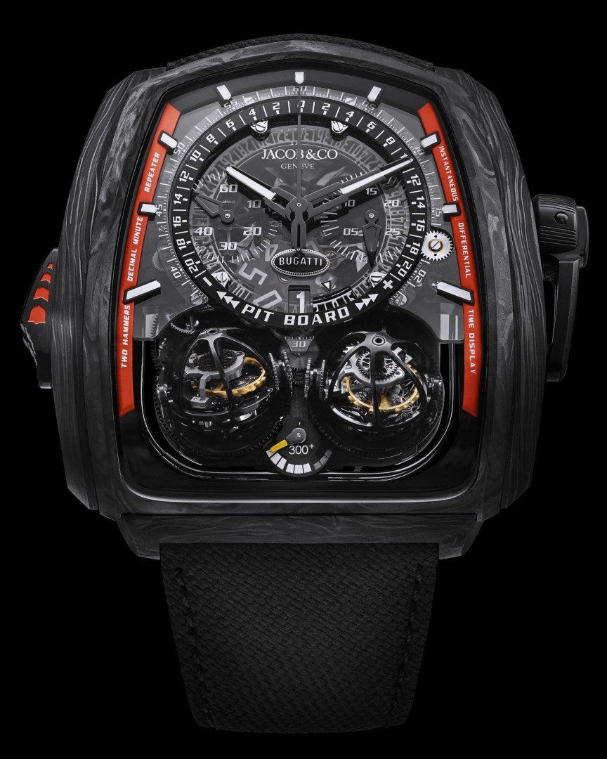 Bugatti je lani stopil na novo pot z izbiro drugega urarskega partnerja, ameriškega igralca Jacob & Co., ki je znan po kompleksnih časomerih in prestižnem diamantnem nakitu. Znamki sta skupaj pripravili že tri krasne časomere, sedaj pa je napočil čas za novo lansiranje. Edinstveni merilec časa Twin Turbo Furious 300+ se, kot ime namiguje, poklanja Bugatti Chironu Super Sport 300+, najhitrejšemu serijskemu superavtomobilu v zgodovini, ki iz modificiranega 8,0-litrskega motorja razvija skoraj nepredstavljivih 1.600 konjskih sil, ki mu omogočajo, da se požene do vrtoglavih 483 km/h. Ker bo ustvarjen v zgolj 30 enotah, tudi časomer ohranja ekskluzivno noto in bo zaživel v treh kosih. Ekstremnemu Chironu se poklanja z dovršenim tourbillon gibanjem iz titana, ki se nahaja v karbonskem ohišju z okrasnima oranžnima pasicama.
