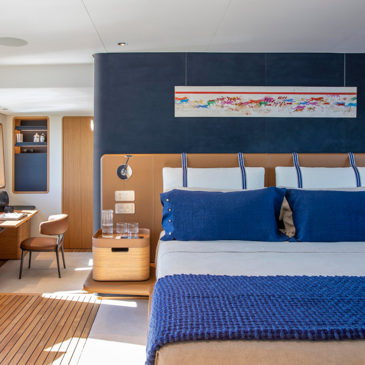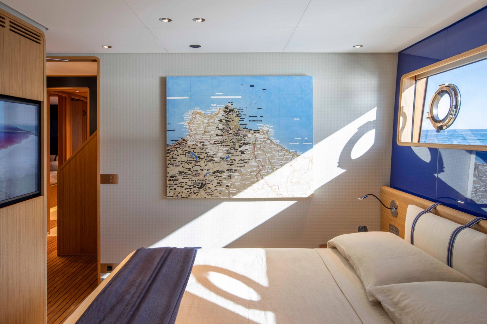 Prestižna Navetta 30 se ponaša s tremi krovi in 320 kvadratnimi metri površin, zaradi česar lahko sprejme kar deset gostov, ki bivajo v prekrasnih kabinah. Najbolj očarljiva med njimi je kakopak velika lastnikova suita, ki skupaj s salonom in kuhinjo domuje na glavni palubi, medtem ko se štiri sobe za goste z lastnimi kopalnicami in prostor za posadko nahajajo na spodnji palubi.