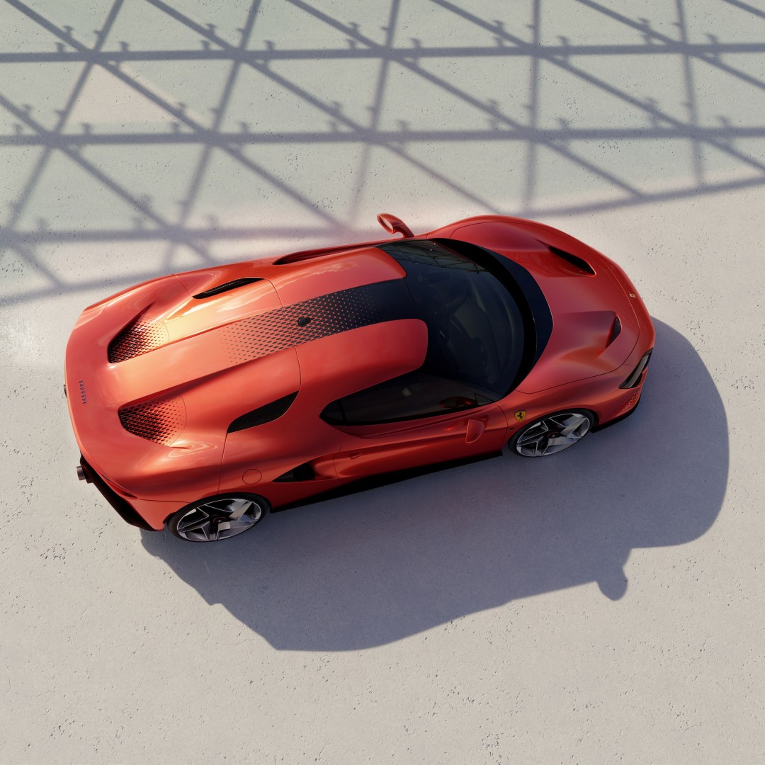 Tej ideji je sledil Ferrarijev oblikovni center pod taktirko Flavia Manzonija, zaslužen za drzno interpretacijo dvosedežnika F8 Tributo, ki je po mnenju mnogih eden najbolj poželjivih avtomobilov današnjih časov. Kljub temu da jim je obstoječi model služil kot temelj, je bilo dela še in še, saj so želeli povsem zadostiti željam stranke. Športna berlinetta s svojimi skulpturiranimi površinami, vpadljivimi linijami in samozavestno držo sicer ohranja DNK originala, toda po enemu letu oblikovnih naporov je pridobila samosvoj karakter. Za to so zaslužne obsežne modifikacije žarometov, maske in spremljajočih odprtin za zajem zraka z osupljivim vizualnim efektom, ki ga dodatno poudarjajo črno obarvani A-stebrički. Ti so del kontrastne barvne sheme, pri kateri se tradicionalna Ferrarijeva rdeča druži z večno črno. Prav poseben element predstavlja centralni del strehe z grafiko prelivanja barv v heksagonalni obliki, ki se v navezi s pokrovom motorja odlično sklada z identiteto obraza avtomobila. Za doseg sofisticirane igre simetrije je bilo žrtvovano zadnje okno, za odmik od klasike pa ubrana nova smer z izredno tankimi svetili na zadku, ki predstavljajo elegantno alternativo poznanemu paru okroglih luči.
