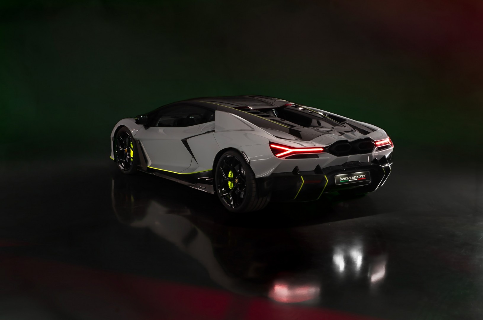 Glavna zvezda dogodka, ki je slavil vse, povezano z legendarnim italijanskim proizvajalcem, je bil tako unikatni Revuelto, ki drzno oblikovanje potiska do limita. Na emotivno doživetje vožnje nakazuje velikodušna implementacija karbona, ki krasno sodeluje s sivo karoserijo in z neon zelenimi dodatki, ki vizualno poudarjajo izzivalne linije hibridnega avtomobila, ki ima posebno mesto v zgodbi Lamborghinija.