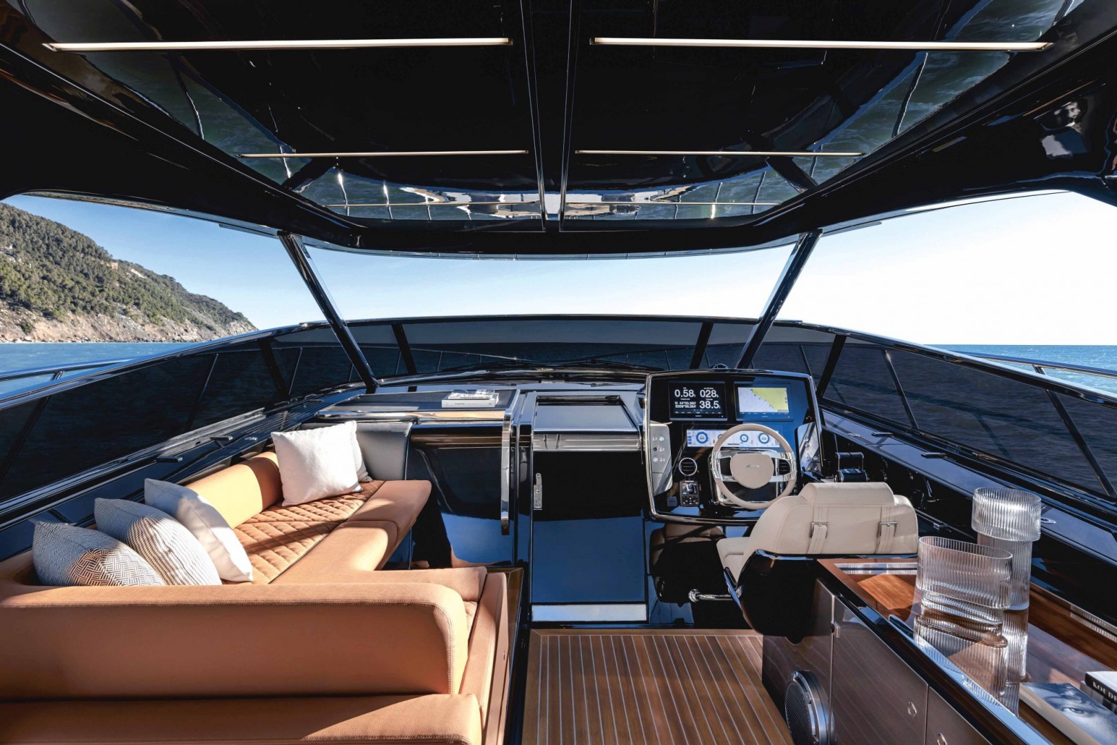 Ko se pri Rivi, enemu izmed globalno najbolj cenjenih navtičnih podjetij, lotijo novega projekta, z nestrpnostjo pričakujemo finalni rezultat, kajti vemo, da ne bo razočaral. Tokrat so z namenom izpopolnitve pod drobnogled vzeli dva sorodna modela, ki sta med poznavalci zapisana kot čudo estetike – 56′ Rivale in Dolcerivo. Prva je leta 2017 lansirana odprta jahta z dinamičnim, a razkošnim videzom, katerega ustvarja vpadljiva metalik barva zunanjosti, h kateri se odlično podajo črni in jekleni poudarki ter prelep naravni tik. K njeni mogočni prezenci na vodi pripomorejo tudi velika zastekljena okna, ki tečejo vzdolž trupa, in edinstveno vetrobransko steklo, ki ščiti kokpit in hkrati zaključuje aerodinamični profil jahte. Ker je ta oblikovna zasnova požela mnogo navdušenja, so pri sloviti italijanski znamki dve leti kasneje po podobnem receptu kreirali luksuzni športni cruiser Dolceriva, ki si navkljub nekaj metrov manj s sestro deli estetsko izčiščenost zunanjega dizajna, prefinjenost notranjih materialov in vrhunsko zmogljivost pogonske enote. V primerjavi s 56′ Rivale Dolceriva sicer ne ponuja blazin za sončenje na premcu, toda to nadoknadi z inovativno razširitvijo telesca ob krmi, s katero so oblikovalci ustvarili prostor za še dve veliki blazini; skupno lahko tam v največjem udobju ležijo štiri osebe, medtem ko se sončnim žarkom lahko nastavljajo tudi tisti, ki bodo zadnjice parkirali na dveh velikodušnih zofah, lociranih ob kokpitu.
