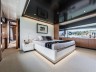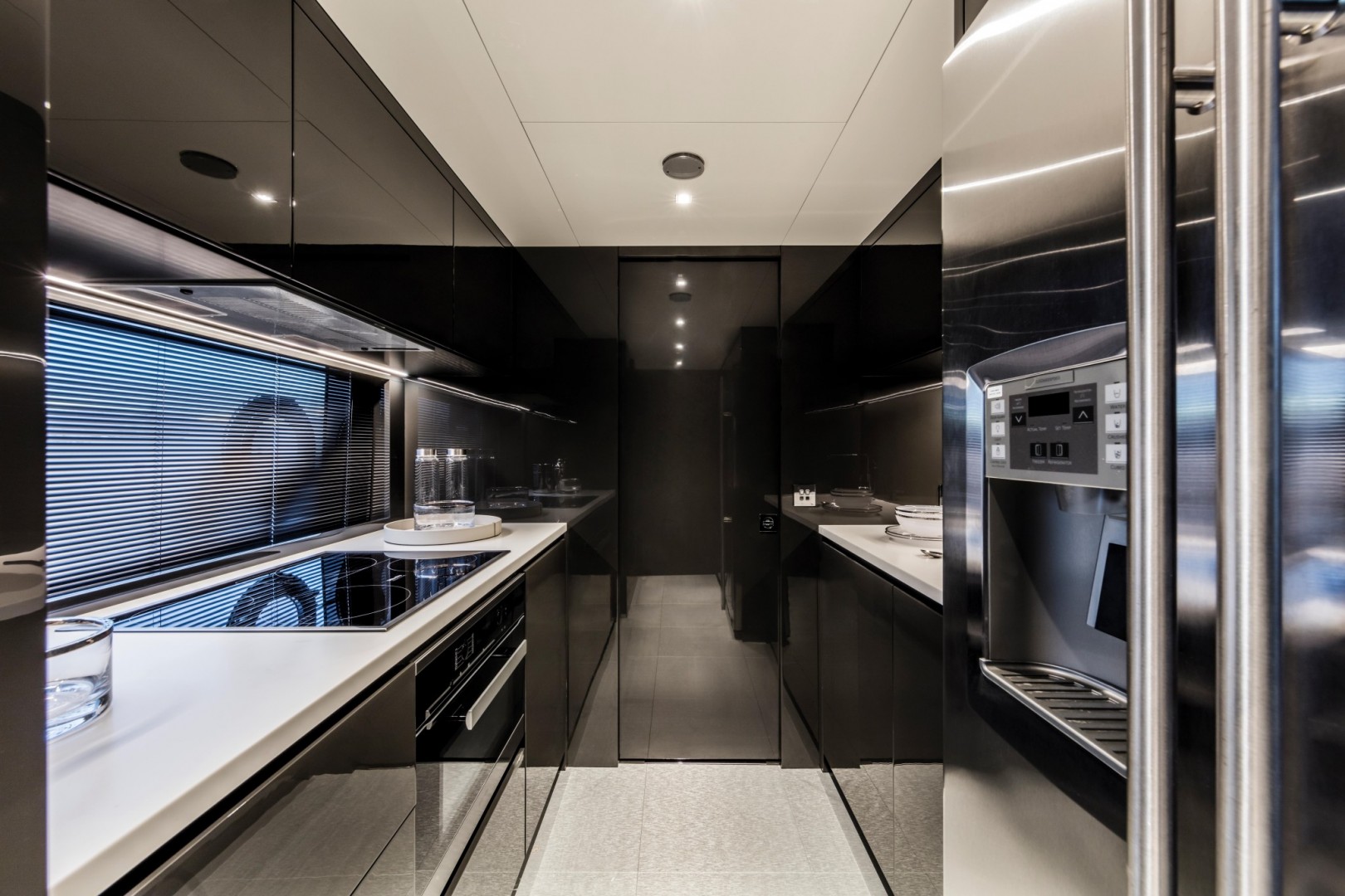 Pot mimo velikodušne zofe v obliki črke L vodi od jedilnice za osem oseb, fantastične ladijske kuhinje in tehnološko izpopolnjene krmilne postaje vse do razkošne kabine lastnika, ki je pozicionirana na premcu glavne palube in se pohvali z lastno kopalnico in walk-in garderobo. A ker gre za izredno luksuzno plovilo, so pri Rivi spodaj zasnovali še eno magično master suito, ki jo dopolnjujejo tri kabine. Tudi tu so nadaljevali s filozofijo elegance, katero ustvarjajo angleški oreh, belo usnje, črni lakirani stropi in jekleni elementi. Še en vrhunec predstavljajo kopalnice, odete v prekrasen marmor v belo-sivem vzorcu Calacatta Australe.