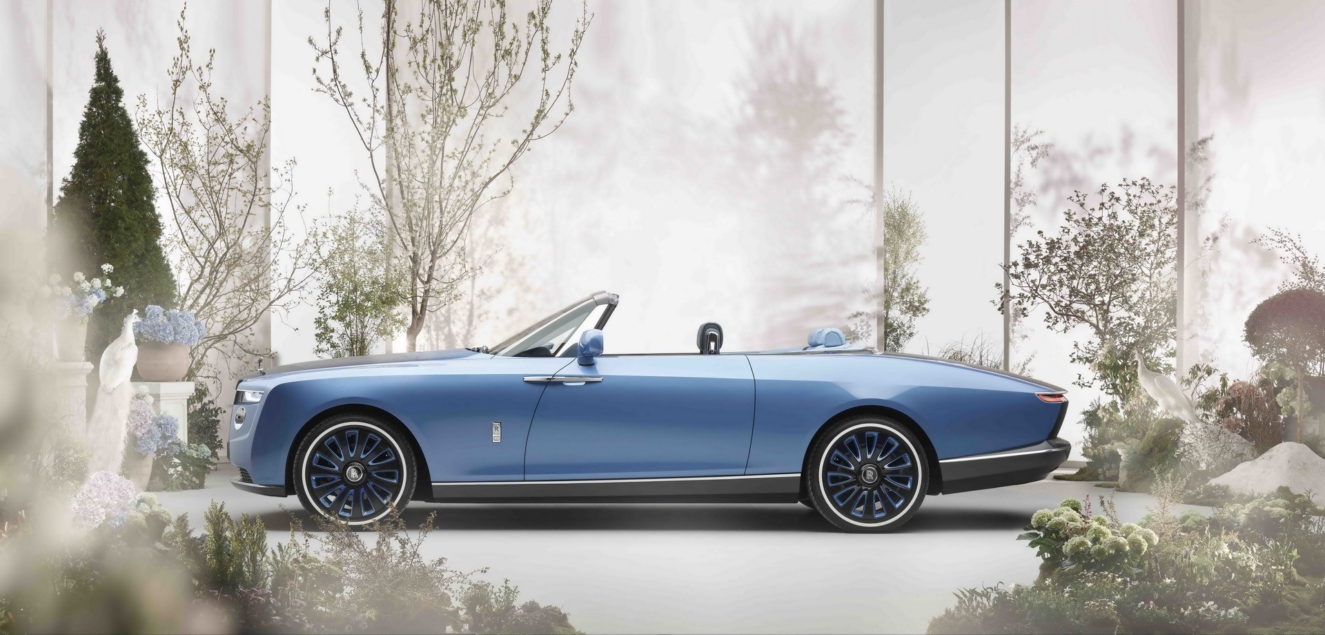 Ta po njunem mnenju pomeni eleganten, skoraj 5,8 metrov dolg dvosedežni kabriolet z navtičnimi referencami. Ker gre za Rolls-Roycea kot še nikoli poprej, čisto vsak delček po meri narejenega vozila izžareva vrhunsko kakovost ročne izdelave in pedantno pozornost do podrobnosti. Ključna posebnost vozila je zadek, ki prezentira moderno interpretacijo lesenih palub iz sveta navtike. Glede na želje patronov so pri Rolls-Royceu ustvarili ambiciozen koncept, še nikoli prej viden v avtomobilski industriji. Ob pritisku na gumb se namreč element, odet v sivo-črn furnir, odpre v stilu metuljevih kril in s tem razkrije misterij, ki ga skriva v sebi. Gre za zakladnico, ki vsebuje vse sestavine za unikatno izkušnjo obedovanja na svežem zraku: dvojni hladilnik, ki klientove najljubše letnike šampanjca ohladi na perfektnih šest stopinj Celzija, štiri lične kozarce ter krožnike in pribor z vgraviranim imenom Boat Tail. Na vsaki strani inovativne pogruntavščine se preprosto odpre koktajl mizica, pod katero se hranita dva minimalistična sedeža, kot tudi senčnik, ki zaključuje ta zanimiv komplet za kosilo al fresco.