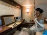 Novosti se nadaljujejo v prestižnem salonu, ki se zahvaljujoč posebni obliki nadgradnje pohvali z darodarno višino prostora, medtem ko panoramska okna ponujajo osupljiv pogled na lesketajoče se morje. Sunseekerjevi oblikovalci so z majhnimi, a pomembnimi spremembami uspeli ustvariti odličen ambient. Najnovejše sisteme za zabavo in vrhunske materiale so uporabili tudi pri načrtovanju nič manj impresivnih kabin na spodnjem krovu, ki bodo nudile namestitev šestim gostom in dvema članoma posadke. Nekaj besed je treba nameniti luksuzni glavni suiti, ki bo z lastno kopalnico, mizo, zofo in celo z walk-in garderobno omaro navdušila vsakega, ki bo prespal v njej. Naravni toni rjave, bež in bele ustvarjajo sproščujočo atmosfero in se čudovito skladajo z opremo na glavnem krovu.