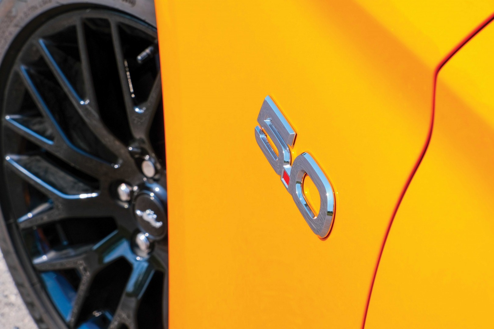 Zato je Mustang z razlogom najbolj popularen športni avtomobil na svetu. Ima pač druge čare, ki te po svoje povsem prevzamejo, le možnost mu moraš dati. Enostavno ima karizmo in tisti uau faktor, tako ob pogledu nanj, kot tudi med samo vožnjo, pa čeprav niti približno ni vozniško tako dober kot drugi evropski športni avtomobili. Že samo parkiran na parkirišču je kot po tekočem traku privabljal poglede mimoidočih, ogromno je bilo tudi mladine, ki je že od daleč z navdušenjem kričala »mustaaang, mustaaang« in se silovito podala v dir proti rumeno-oranžni pošasti (ne morem se odločiti, ali je rumene ali oranžne barve) in jo začela z navdušenjem fotografirati. In tudi starejši možakarji so z veseljem pristopili in si Mustanga ogledali pobliže in še sami prosili ženo, da stisne še eno fotko za spomin. Ne spomnim se, kdaj bi kakšen testni avtomobil požel toliko zanimanja, navdušenja in odobravanja kot tale legendarni Mustang. Enostavno ima karizmo. Seveda je pač silhueta tista, ki ga dela prepoznavnega, dolg pokrov motorja kot ponedeljek, široki, mišičasti boki, majhna stranska stekla, nizko težišče. Linije so ostre in markantne. Kombinacija rumene karoserije s črnimi platišči in črno masko je zgolj pika na i.