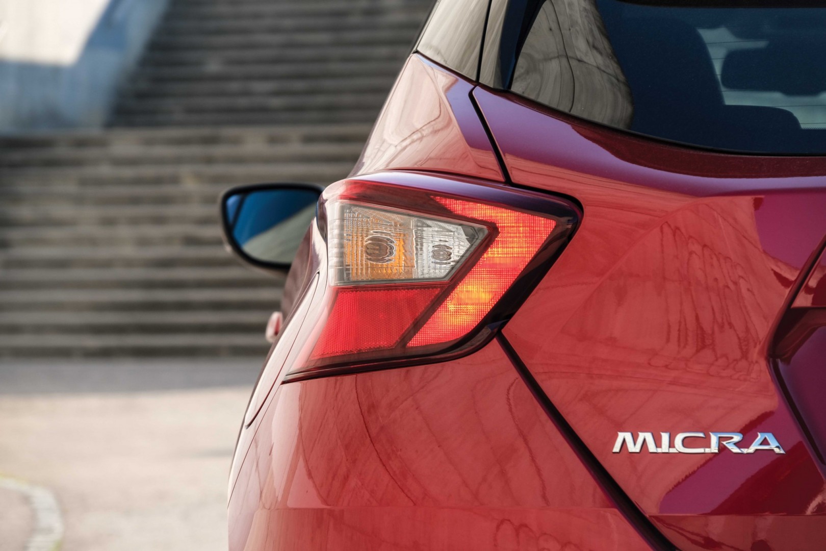Novo Micro odlikuje izrazito atraktivno zunanje oblikovanje, z veliko detajli in ostrimi linijami, čeprav privlačna podoba pride do izraza veliko bolje ob izbiri kontrastne, dvobarvne karoserije, v kakršno je bila odeta prva testna Micra, ki je na sebi nosila atraktivne vložke v kričečo oranžni barvi. Tale, v bordo rdeči barvi in s 16-palčnimi alu platišči, po videzu nikakor ne izstopa, zato se v poplavi pločevine na slovenskih cestah avtomobil hitro izgubi in je precej neopazen, kljub zatemnjenim zadnjim steklom in dnevnim LED-icam.