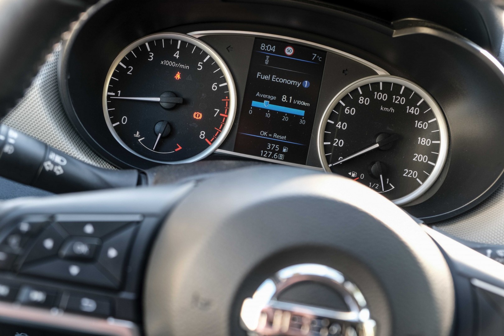 Ne da je avtomobil podhranjen, daleč od tega, a je vseeno prožnost in odzivnost motorja v primerjavi z drugimi trivaljnimi kavnimi mlinčki slabša. Tudi poraba ni najbolj zgledna, v povprečju smo porabili več kot 7 litrov na sto kilometrov, kar se nikakor ne more primerjati z modeli Micra prve generacije, ki še zdaj ostajajo prepoznavne po svoji prostorni, kupolasti notranjosti in nizki povprečni porabi goriva, okoli 5 litrov na sto prevoženih kilometrov. Avtocestna vožnja za Micro ni najbolj prijetna iz dveh razlogov, in sicer prvi je, da ima menjalnik samo pet prestav, drugi pa je slabša zvočna zatesnjenost, pri čemer se v kabino prikrade občutno preveč zunanjega hrupa pri višjih hitrostih. Motor se zna sicer pri nižjih hitrostih, predvsem ob speljevanjih sem in tja, obotavljati in je neodločen, kar v praksi privede do nadležnega cukanja, zato je potrebno nekaj časa, da se voznik dobro razume s sklopko, z motorjem in z menjalnikom.